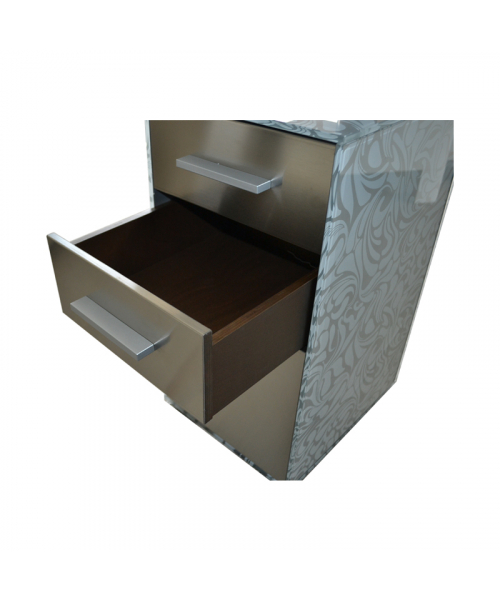 Маникюрный стол "188 LX" - элегантный маникюрный стол с артикулом A-м60003095 из закаленного стекла из линии "PRESTIGE", супер турбо аспиратор AR5 с фильтром с активированным углем "long life" для удержания запахов и пыли, съемный для чистки "без жидкости", шкафы с деревянными ящиками и фасадами, покрытыми сатинированной сталью.