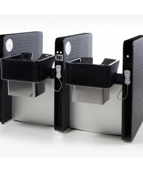 Движения синхронизированные, что позволяет клиенту принять положение "полулежа" обеспечивая максимальный комфорт. Мойка комплектуется глубокой керамической раковиной с регулировкой угла наклона и комплектом смесителя.