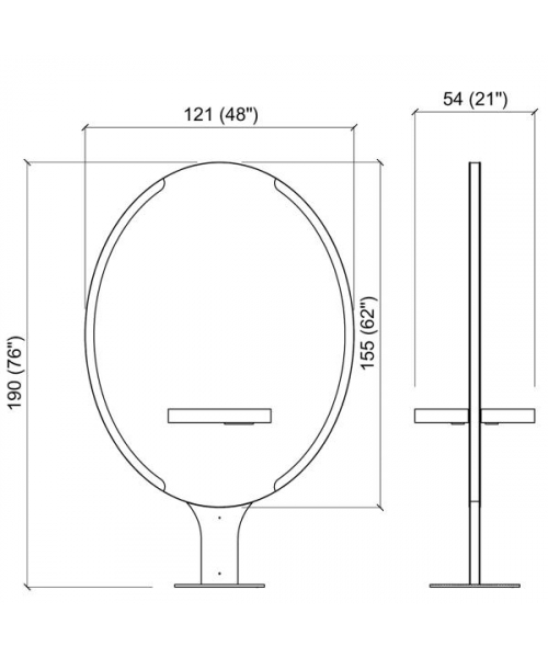 Зеркало парикмахерское "Pandora Wall LED" - на два рабочих места. Рабочий туалет оснащен светодиодной подсветкой LED, столешницами из нержавеющей стали, а также металлическим основанием округлой формы. Крепление к полу.