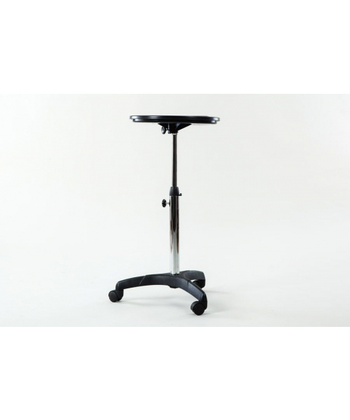 Компактная тележка для аксессуаров c одним ярусом для размещения необходимых принадлежностей и инструментов. Столешница с отверстием для фена: продуманная конструкция облегчает работу парикмахера, все аксессуары находятся под рукой.